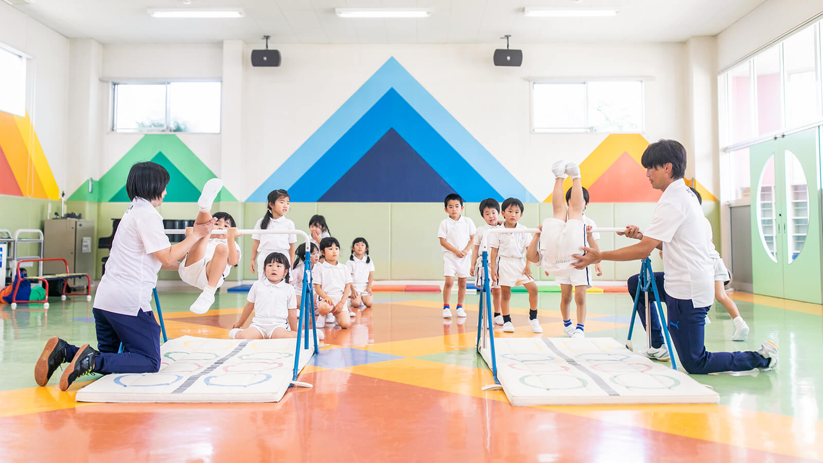 ● 器械運動全般 (マット・跳び箱・鉄棒など) や、陸上競技全般を体験することにより、運動好きな子どもの育成を目指します。